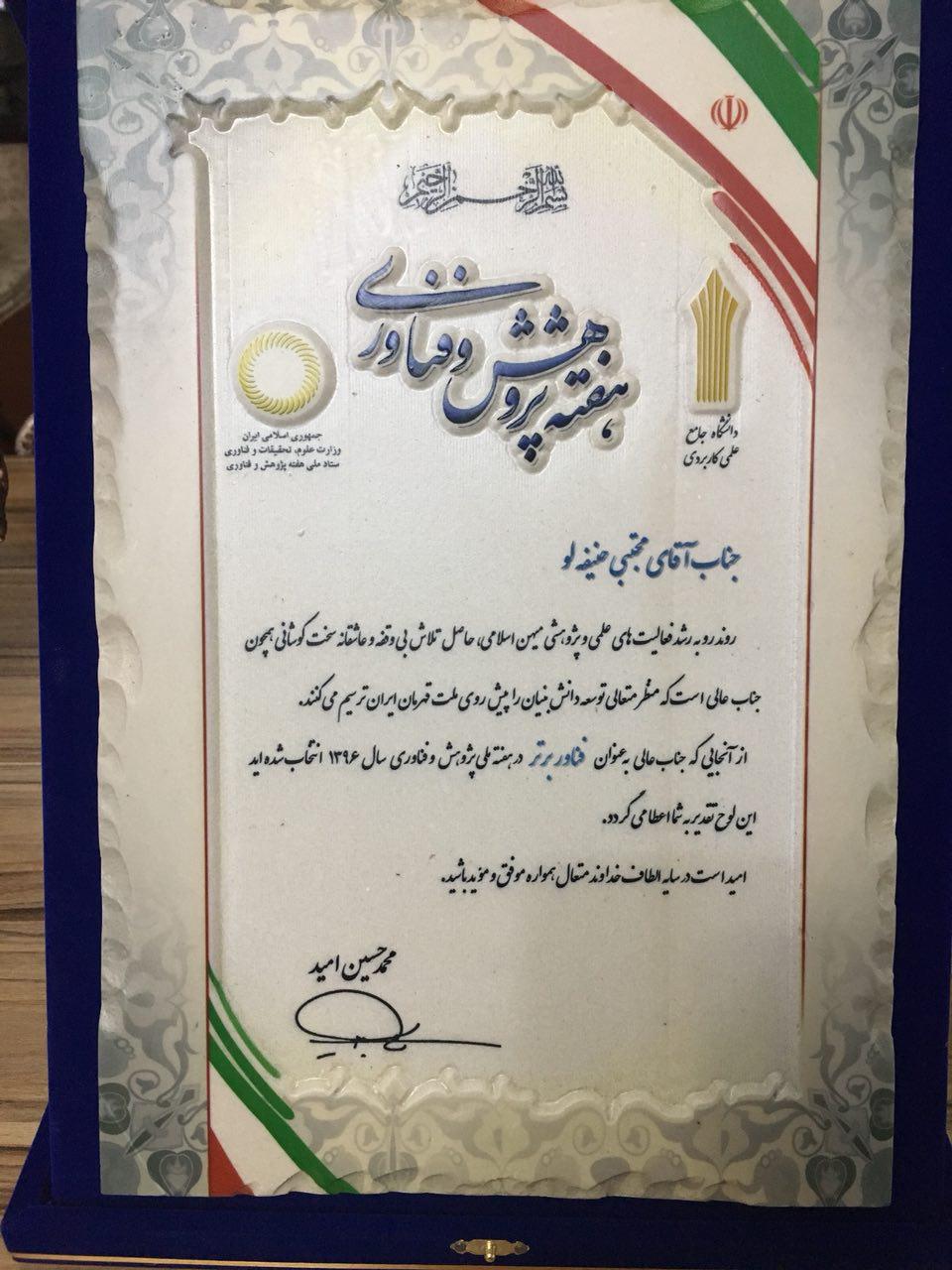 واحد استانی زنجان به عنوان غرفه برتر در بین برترینهای هفته پژوهش و فناوری دانشگاه جامع علمی-کاربردی تقدیر شد.