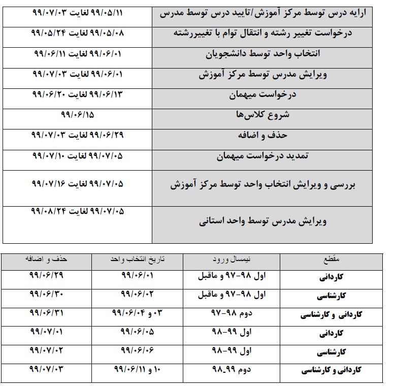 تقویم آموزشی ۱۴۰۰-۱۳۹۹